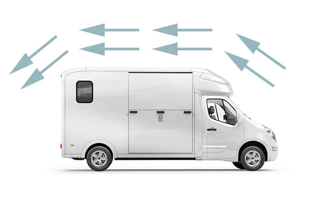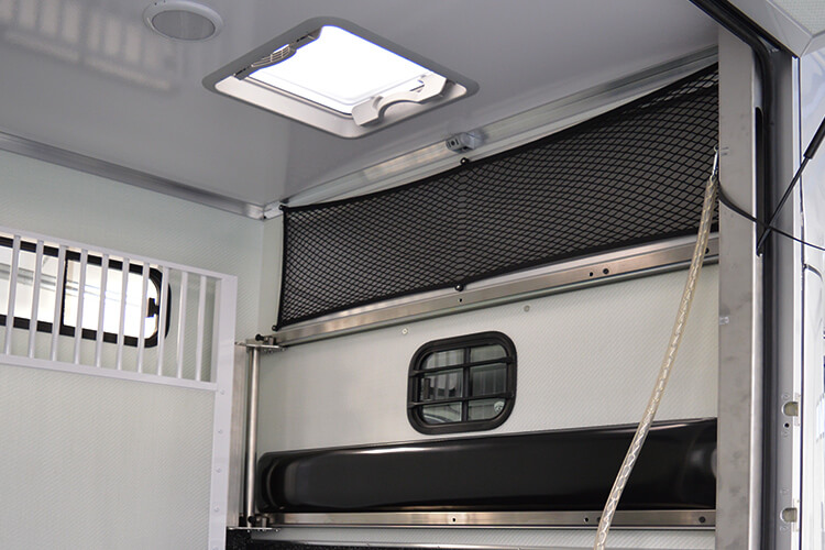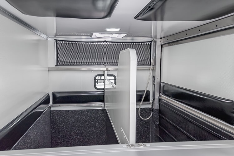 Pro zajištění bezpečnosti a komfortu během přepravy je koňský prostor opatřen čalouněním na všech stěnách přepravníku, včetně stropu. Zabraňuje podření či zranění koně.