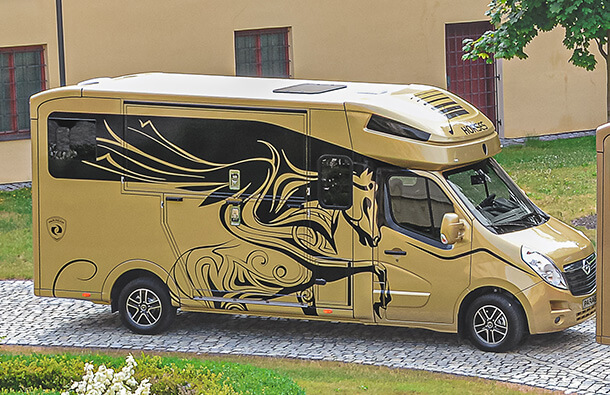 Equistar 3 představuje kompaktní přepravník určený pro rychlou přepravu 2 koní a až 3 cestujících. Jde o nejlehčí verzi z přepravníků Paragan, který se pyšní užitnou nosností až 1210 kg. Klademe vysoký důraz na bezpečnost posádky i Vašich koní. Equistar 3 je oblíbený také pro svůj úsporný provoz, ovladatelnost a výhodu z celkové délky, která nepřesahuje 6 metrů a tím šetří další náklady, například za převoz trajektem. Luton nad kabinou řidiče nabízí velkorysý úložný prostor, který lze zabezpečit sítí nebo dvířkami. Ty naleznete v naší bohaté nabídce komfortních a bezpečnostních doplňků při konfiguraci vozidla.
