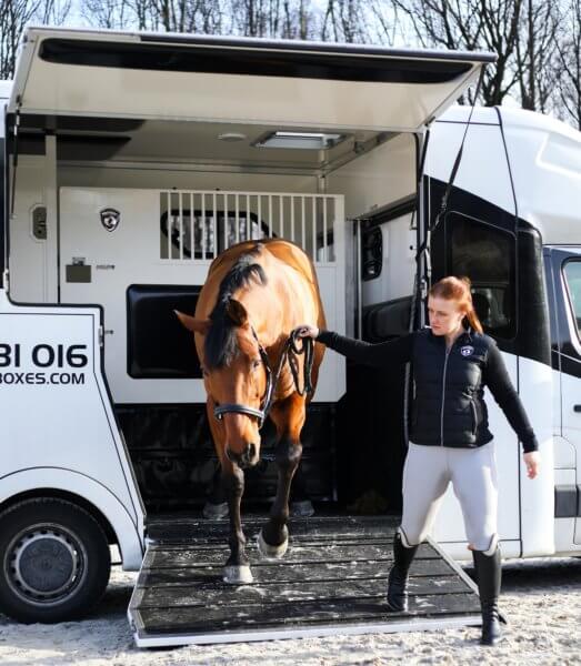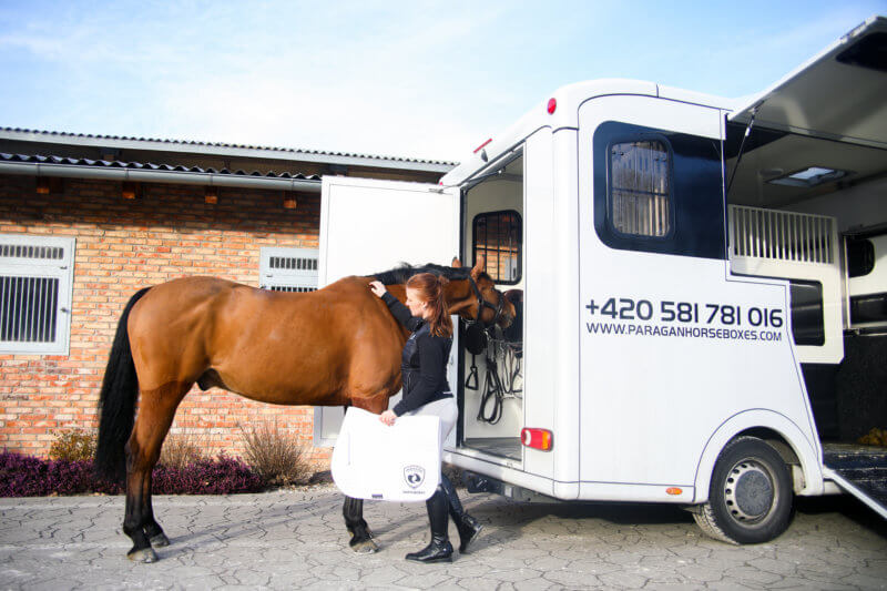 Při pohledu do kamery jsem ocenila stabilitu, kterou cesta v autě oproti přívěsu mému koni nabídla. Valentino je zvyklý na opatrnou jízdu, jíž navzdory občas ve vozíku předvádí různorodé vratké kreace. Dodávka mu poskytla komfortnější cestu s jednodušším vyvažováním, díky níž po hodině a půl dojel na místo určení svěží a připravený na výkon.