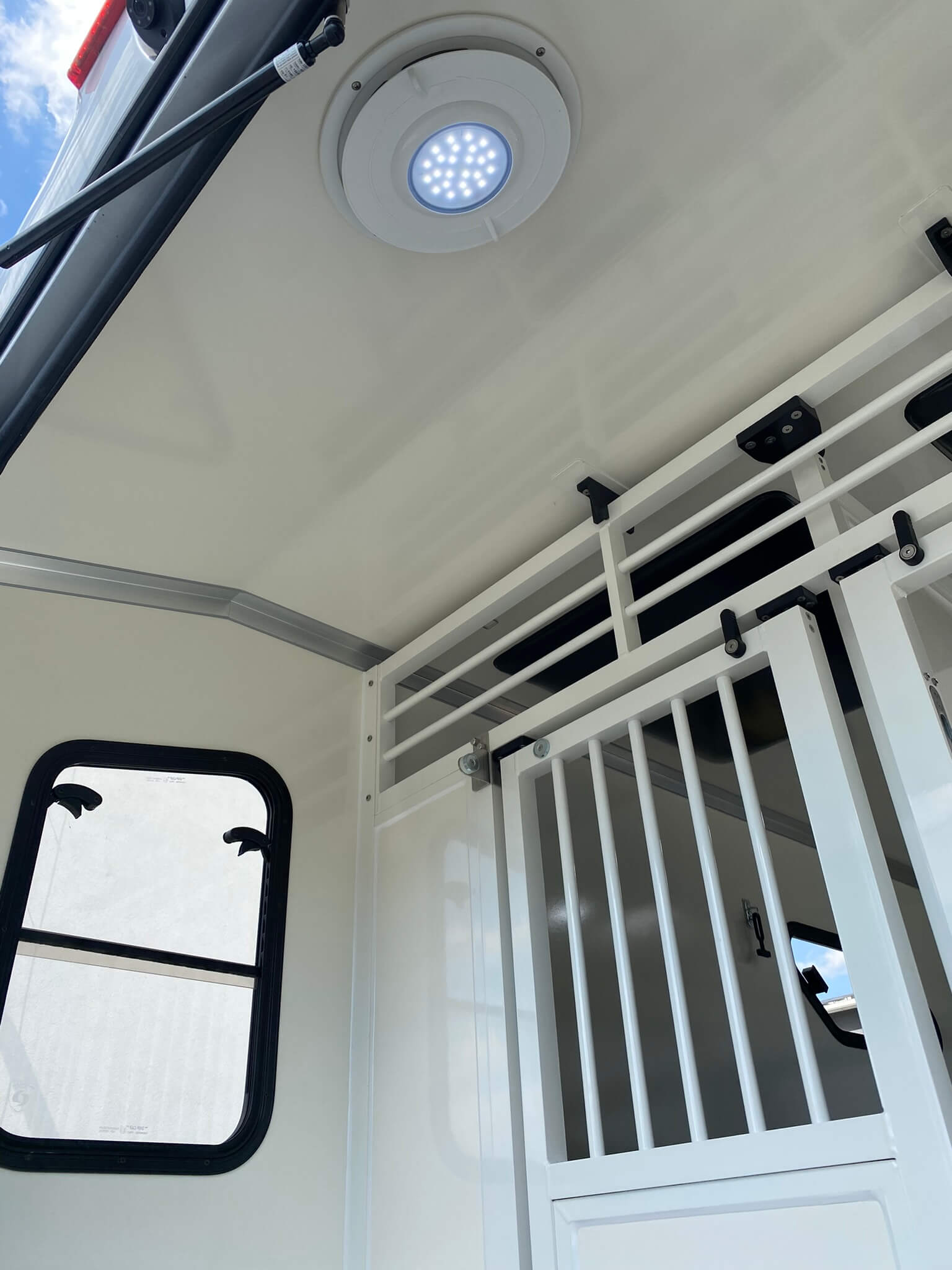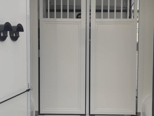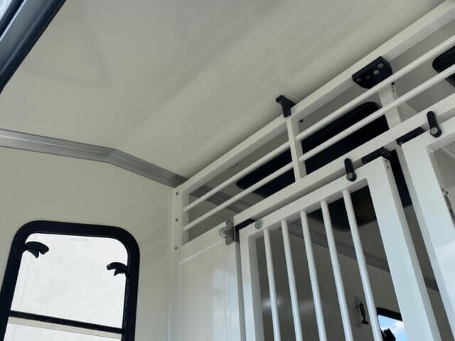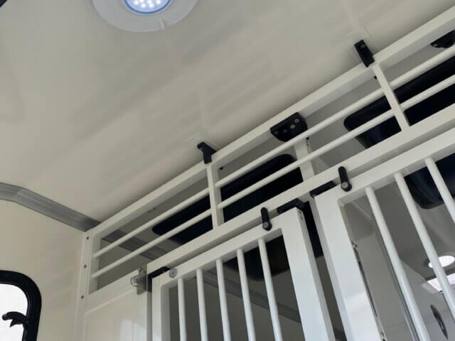 Okno posuvné s mříží mezi kabinou a prostorem pro koně